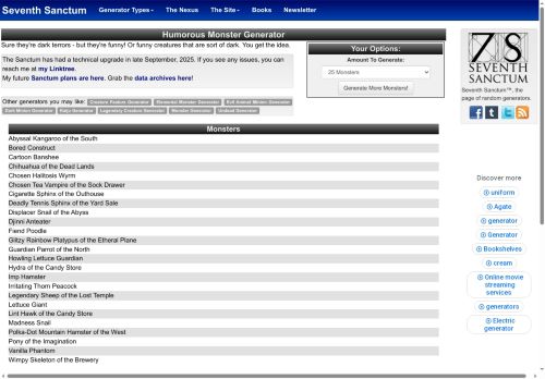 A site of generators to randomly produce concepts, characters, and descriptions for stories, role-playing games, and art, as well as have fun and alleviate creative blocks.