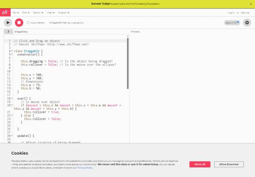A web editor for p5.js, a JavaScript library with the goal of making coding accessible to artists, designers, educators, and beginners.