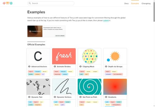A two-dimensional drawing api geared towards modern web browsers. It is renderer agnostic enabling the same api to draw in multiple contexts: svg, canvas, and webgl.