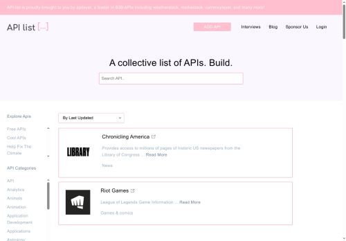 We offer over 800 free APIs for developers to develop the next big thing, add yours if you own an API