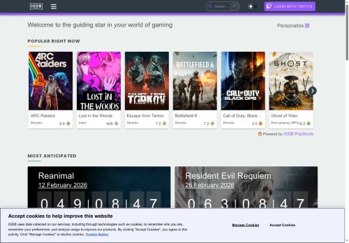 IGDB.com is a video game community website, intended for both game consumers and video game professionals alike.