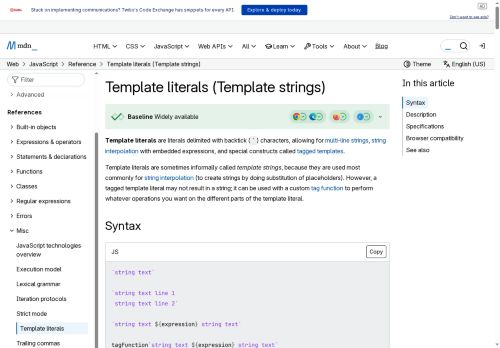 Template literals are string literals allowing embedded expressions. You can use multi-line strings and string interpolation features with them.