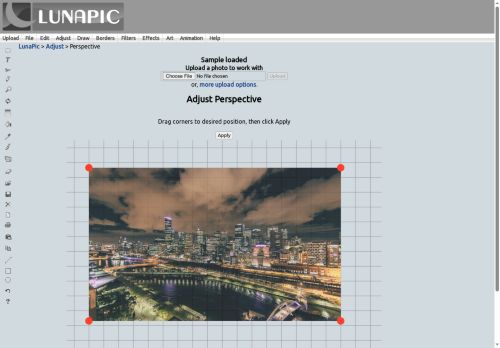 Perspective Free Online Photo Editor. Photo, sketch and paint effects. For Tumblr, Facebook, Chromebook or WebSites. Lunapics Image software free image, art & animated Gif creator.